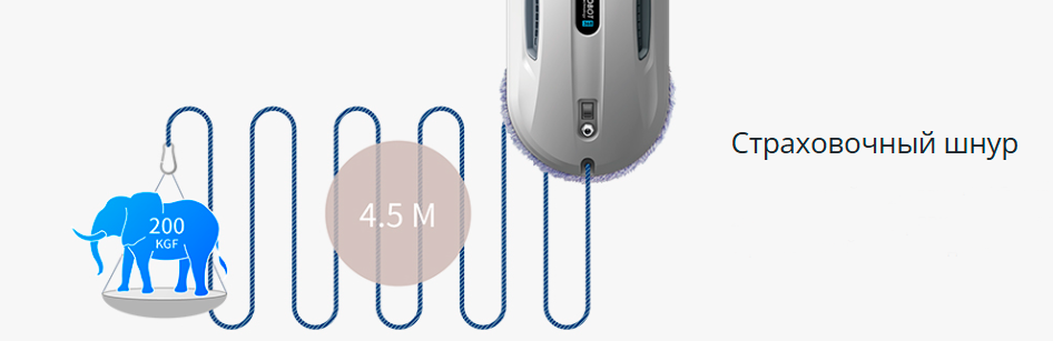 Робот оснащен датчиками обнаружения края и системой аварийного удержания до 20 минут. Также предусмотрен страховочный трос, который повышает безопасность при работе на высоте.